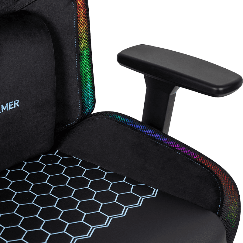 Les accoudoirs réglables en 3D sont un autre avantage majeur du RX-2084 Chaise de jeu de bureau en cuir pvc, bande lumineuse LED, accoudoir 3d . Pour les joueurs d'e-sport et les employés de bureau, la hauteur et l'angle appropriés des accoudoirs peuvent réduire efficacement la pression sur les bras et les épaules. Les accoudoirs 3D de la chaise peuvent être ajustés dans toutes les directions, qu'il s'agisse d'une extension vers l'avant, d'une rétraction, d'un levage ou d'une pression vers le bas, cela peut être facilement réalisé pour répondre aux besoins personnalisés des différents utilisateurs. Avec le dossier et le coussin de siège ergonomiques, il peut fournir un bon soutien à la colonne vertébrale et réduire les dommages corporels causés par une position assise prolongée.